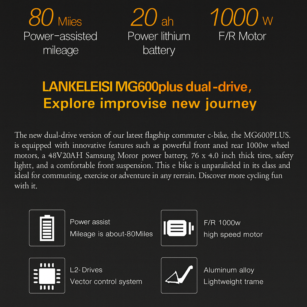 With dual 2000W motors, this electric bike makes climbing hills feel like a breeze, allowing you to explore new routes and conquer inclines without breaking a sweat.